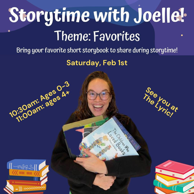 The Lyric Theatre presents Story Time with Joelle with the theme "Favorites" on Saturday, February 1, 2025.
