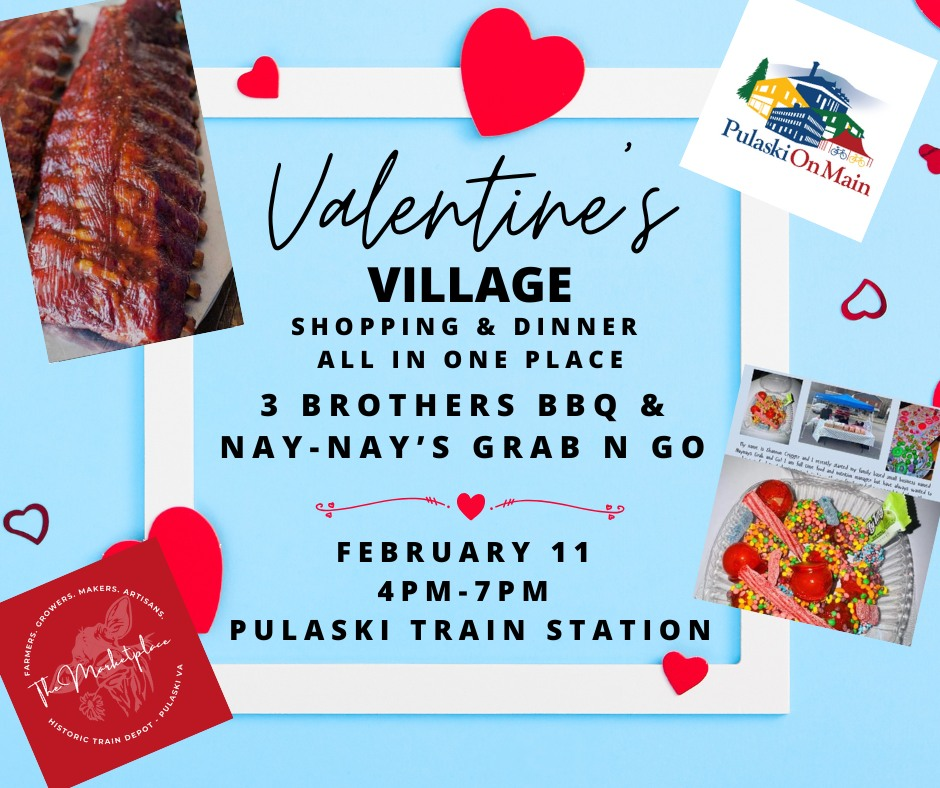 Pulaski on Main presents The Valentine's Village: A Marketplace Event on Tuesday, February 11, 2025 at the Pulaski Train Station.