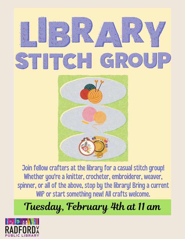 The Radford Public Library presents their Monthly Library Stitch Group on Tuesday, February 4, 2025.