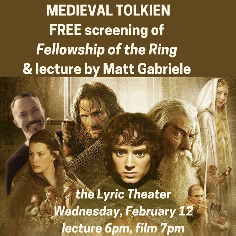 The Lyric Theatre presents An Evening of Tolkien and The Middle Ages with a Free Screening of "The Fellowship of the Ring" and Lecture on Wednesday, February 12, 2025.