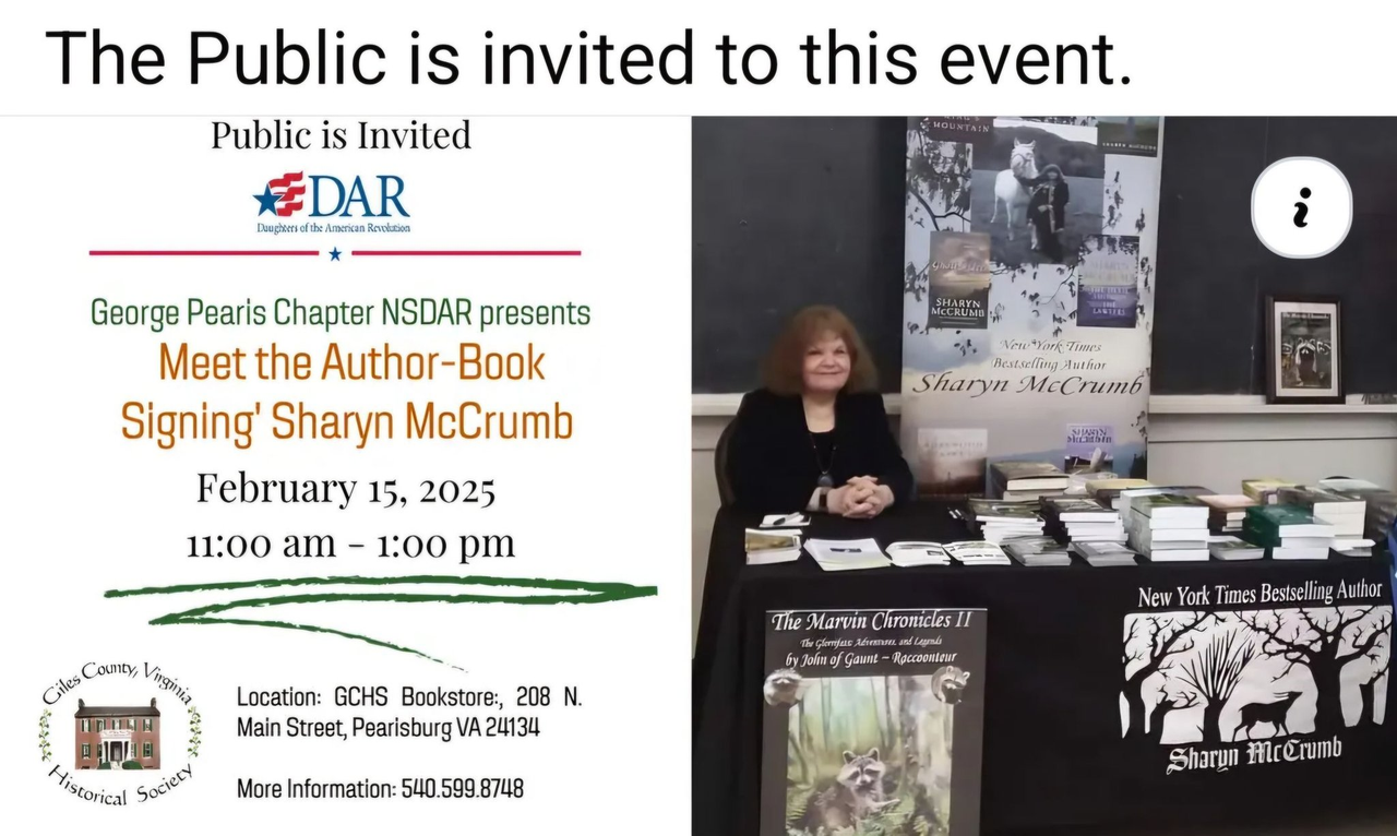 https://www.gilescountyvirginiahistory.com/events/meet-the-author-book-signing-sharyn-mccrumb or
