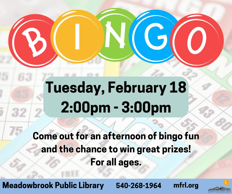 The Meadowbrook Public Library presents Bingo for All Ages on Tuesday, February 18, 2025.