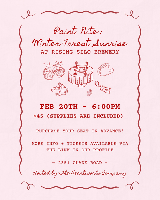 Join us for a cozy evening of creativity at Paint Nite! Grab a pint, pick up a brush, and let The Heartworks Company guide you through a fun painting session.