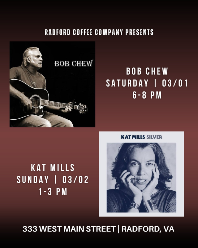 Radford Coffee Company presents Bob Chew in concert on Saturday, March 1, 2025.