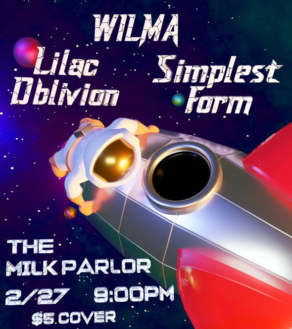 The Milk Parlor presents a Three Band Concert with Simplest Form, Lilac Oblivion and Unmarked Pavement on Thursday, February 27, 2025.