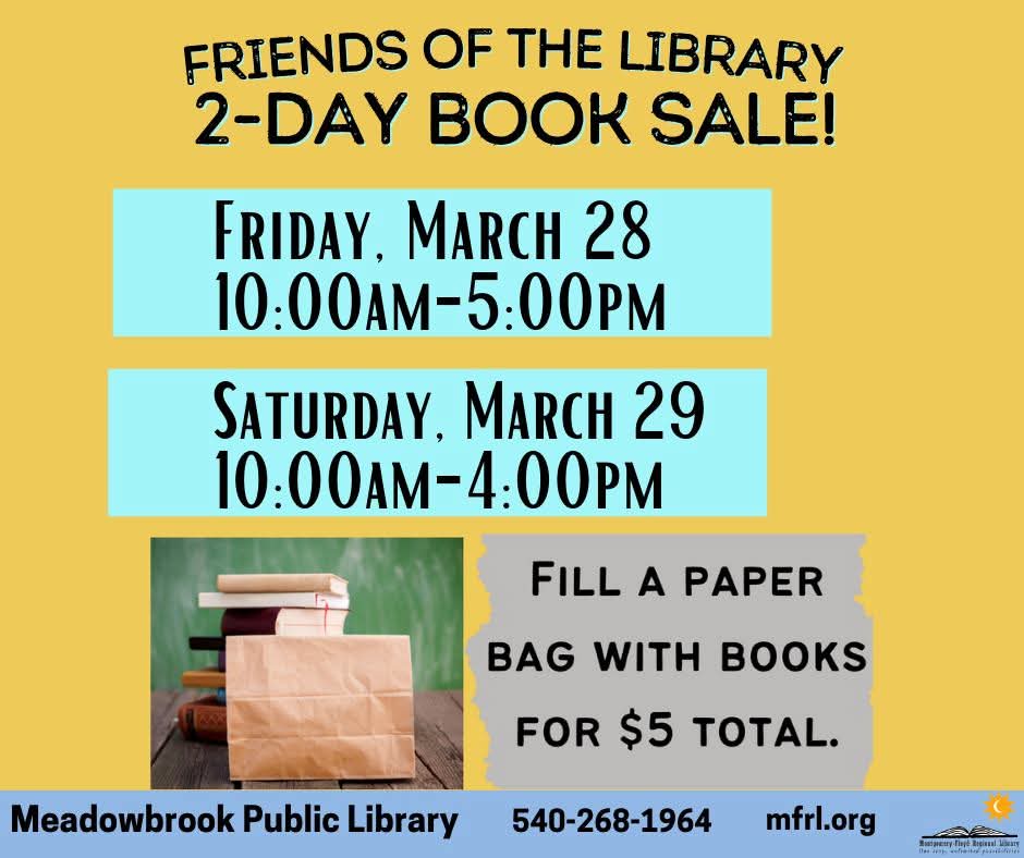 The Meadowbrook Public Library presents Friends of the Library Two-Day Book Sale on Friday, March 28, 2025 and Saturday, March 29, 2025.