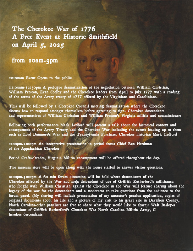 https://www.historicsmithfield.org/events/cherokee-war-of-1775 or