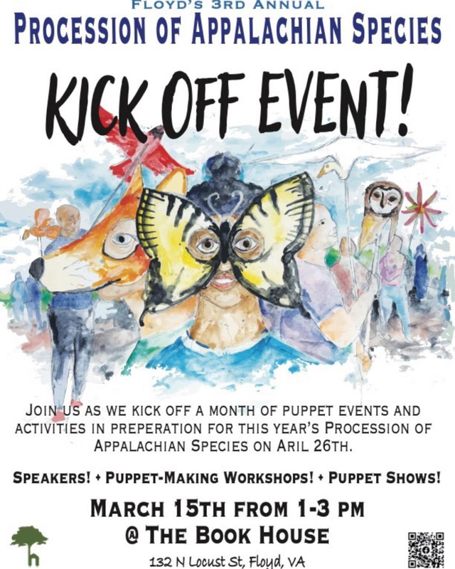 The Book House Floyd hosts Floyd's 3rd Annual Procession Of Appalachian Species Kick Off Event on Saturday, March 15, 2025.
