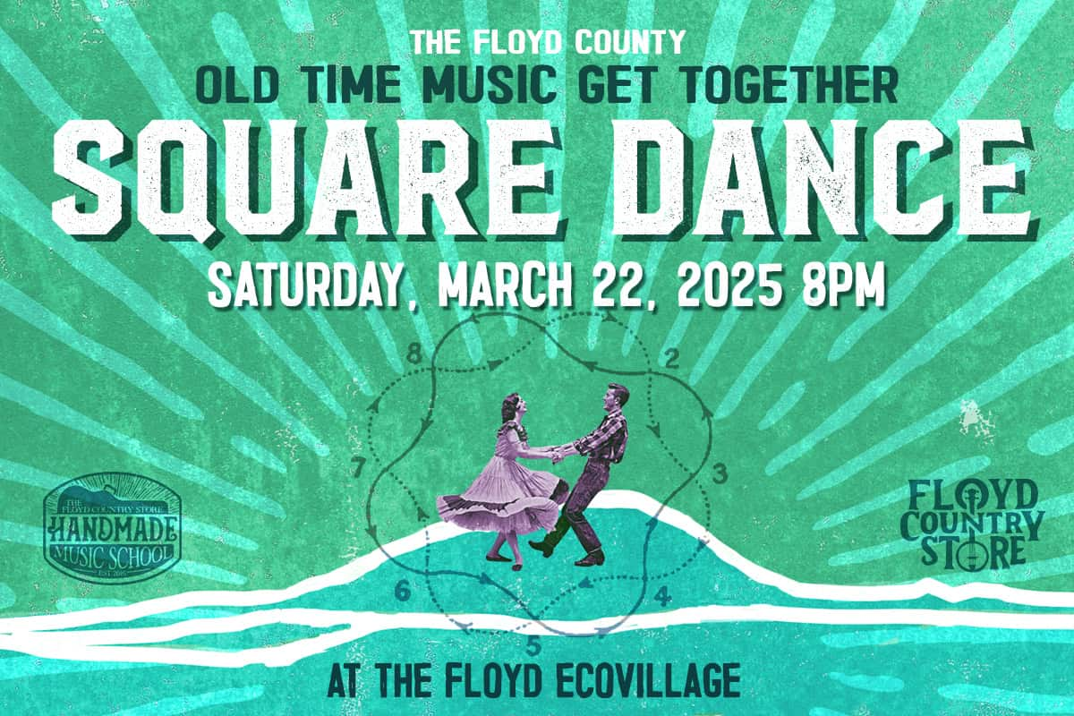 The Handmade Music School presents the 2025 Old Time Music Get Together Square Dance on Saturday, March 22, 2025 at Floyd EcoVillage.