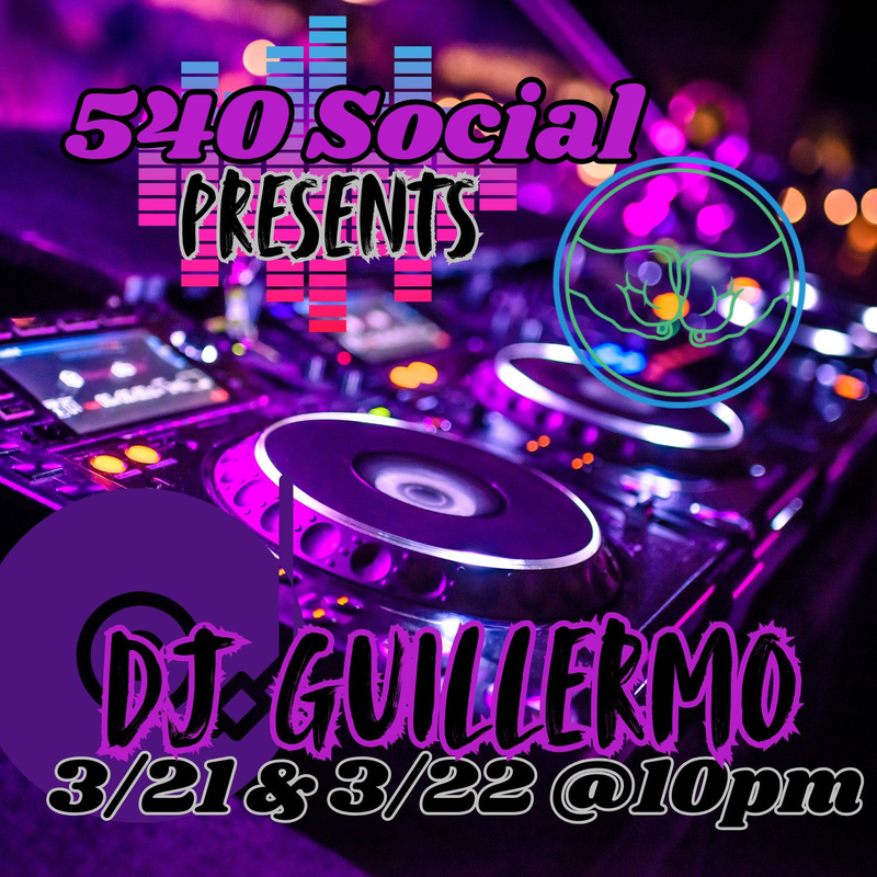 540 Social Blacksburg presents DJ Guillermo performing on both Friday, March 21, 2025 and Saturday, March 22, 2025.