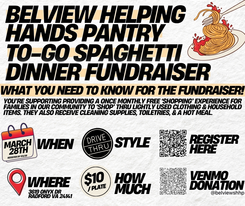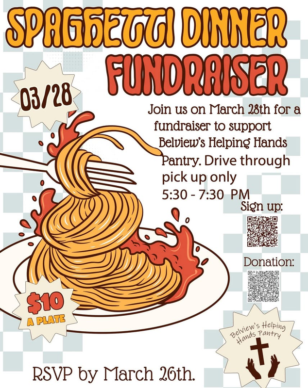Belview's Helping Hands Pantry presents a Drive Thru Spaghetti Dinner Fundraiser on Friday, March 28, 2025 at Belview Church.