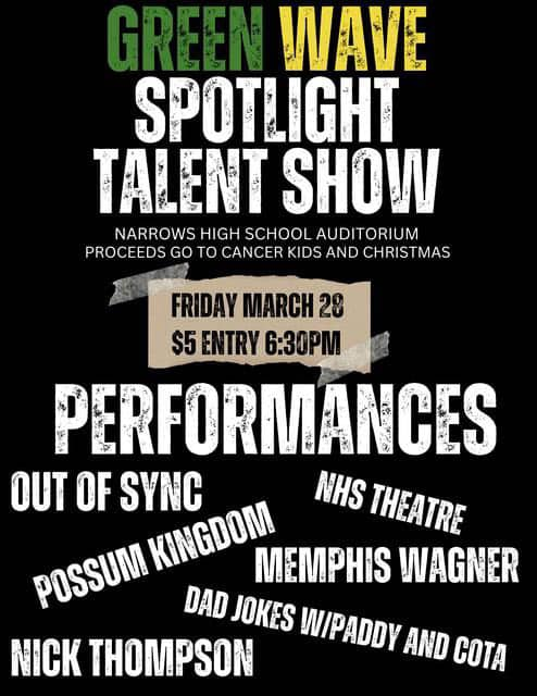 Narrows High School presents the 2025 Green Wave Spotlight Talent Show on Friday, March 28, 2025.