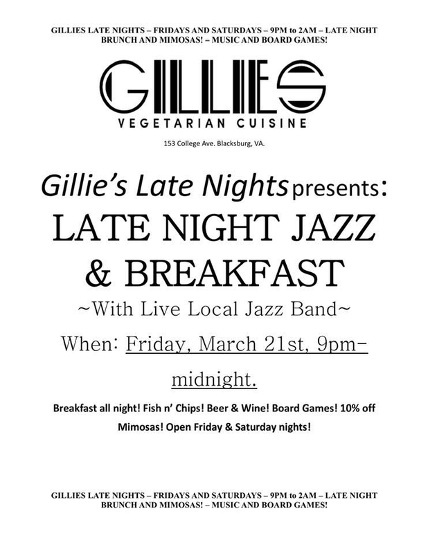 Gillie's is located at 153 College Avenue in Blacksburg, VA.