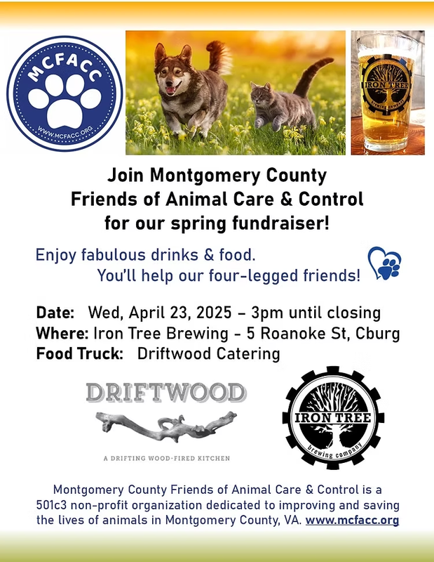 Iron Tree Brewing Company hosts a Montgomery County Friends of Animal Care & Control Spring Fundraiser on Wednesday, April 23, 2025.