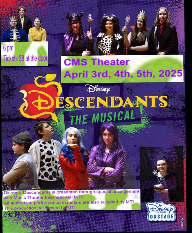 Christiansburg Middle School Theater presents "Descendants The Musical" with three performances starting on Thursday, April 3, 2025 through Saturday, April 5, 2025 at Christiansburg Middle School.
