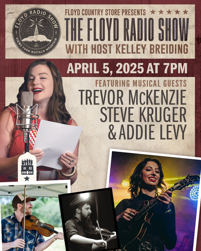 Join us this Saturday Night, April 5th for the last Floyd Radio Show of the season! We'll be going out with a bang! Hosted once again by Kelley Breiding and featuring musical guests Trevor McKenzie, Steve Kruger and Addie Levy!