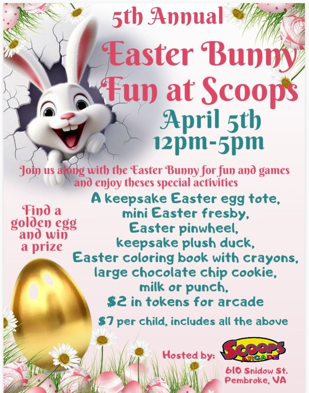 Scoops Arcade presents the 5th Annual Easter Bunny Fun on Saturday, April 5, 2025.