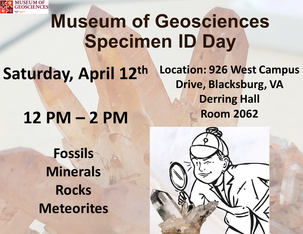 The Museum of Geosciences at Virginia Tech presents a Specimen ID Day on Saturday, April 12, 2025.