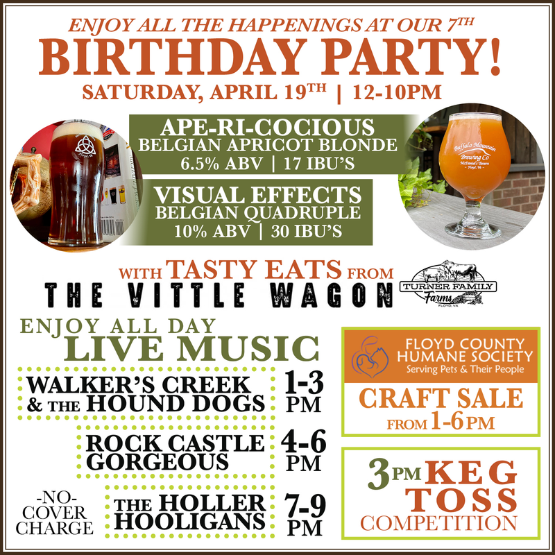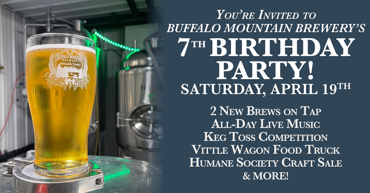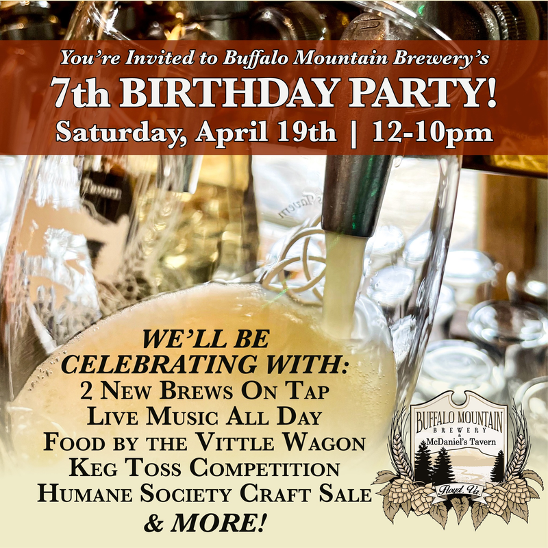 Buffalo Mountain Brewery presents their 7th Birthday Party Celebration on Saturday, April 19, 2025.