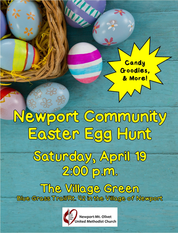 Newport-Mt. Olivet United Methodist Church presents the 2025 Newport Community Easter Egg Hunt on Saturday, April 19, 2025 at The Village Green in Newport, VA.