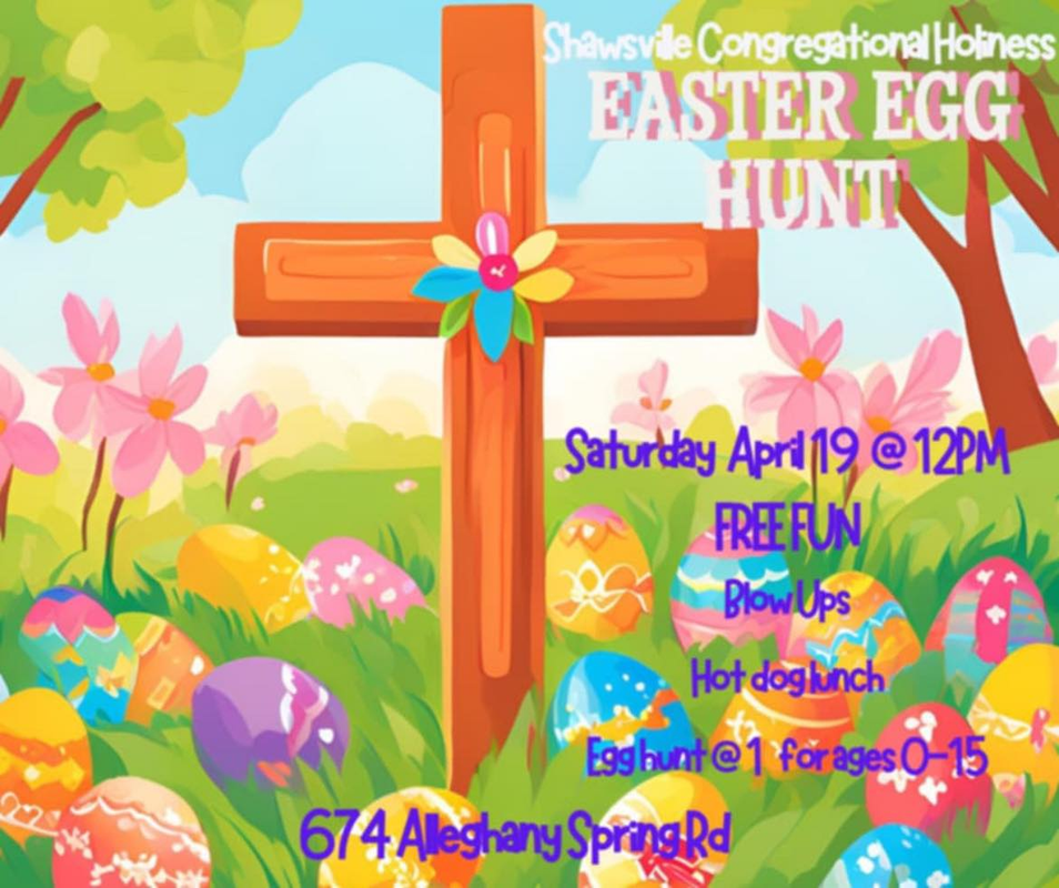 Shawsville Congregational Holiness Church presents their 2025 Easter Egg Hunt on Saturday, April 19, 2025.