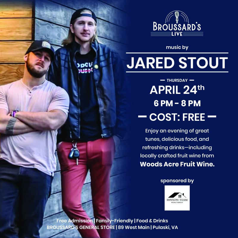 Broussard's General Store continues their Concert Series with Jared Stout in concert on Thursday, April 24, 2025.