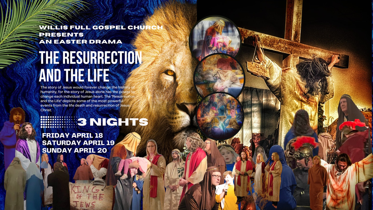 The Willis Full Gospel Church presents "An Easter Drama: The Resurrection And The Life" featuring three performances starting on Friday, April 18, 2025 through Sunday, April 20, 2025.