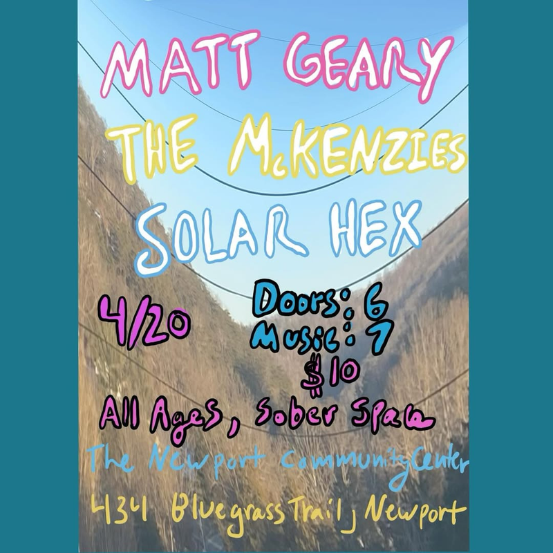 Newport Community Center presents Three Performer Concert with Matt Geary, The McKenzies and Solar Hex on Sunday, April 20, 2025.