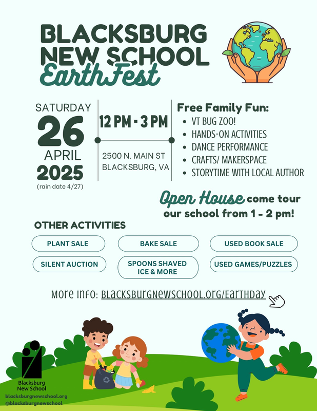 Celebrate Earth Day with us and support Blacksburg New School while enjoying a fun-filled day with the community!