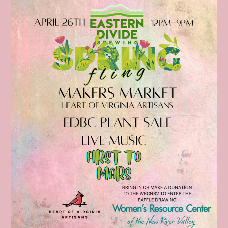 Enjoy the Makers Market featuring Heart of Virginia artisans and the Eastern Divide Brewing Company's Plant Sale where you can find the perfect plants for spring! Enjoy live music from First To Mars from 6:00-9:00 PM.