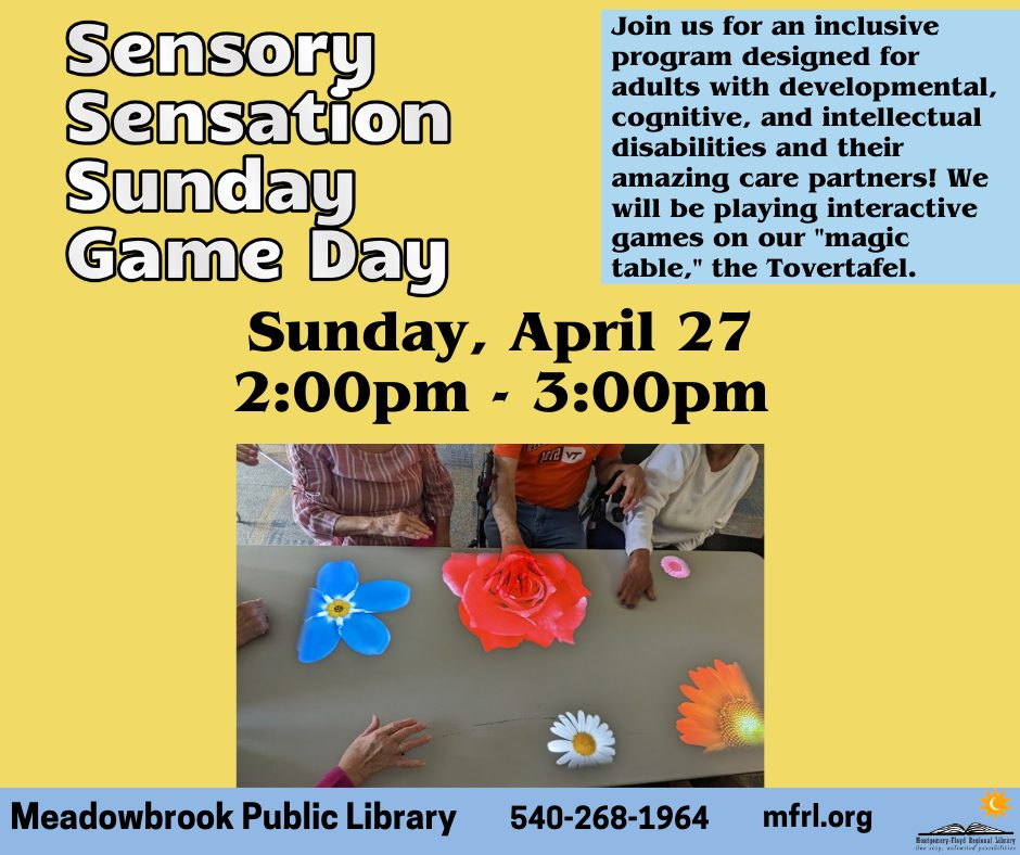 Meadowbrook Public Library presents Sensory Sensation Sunday Game Day on Sunday, April 27, 2025.