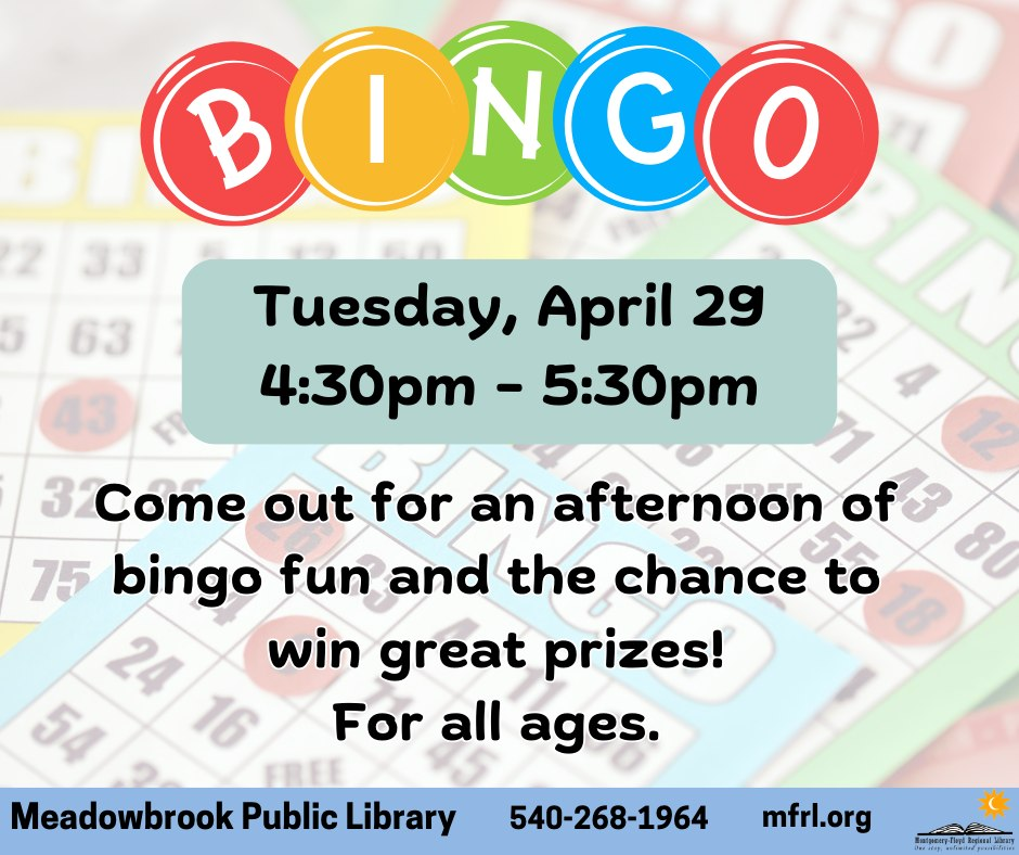 The Meadowbrook Public Library presents Bingo for All Ages on Tuesday, April 29, 2025.