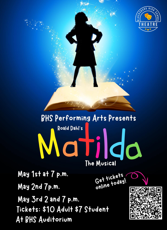 Blacksburg High School Theatre presents "Matilda The Musical" with four performances starting on Thursday, May 1, 2025 through Saturday, May 3, 2025 inside the Blacksburg High School Auditorium.