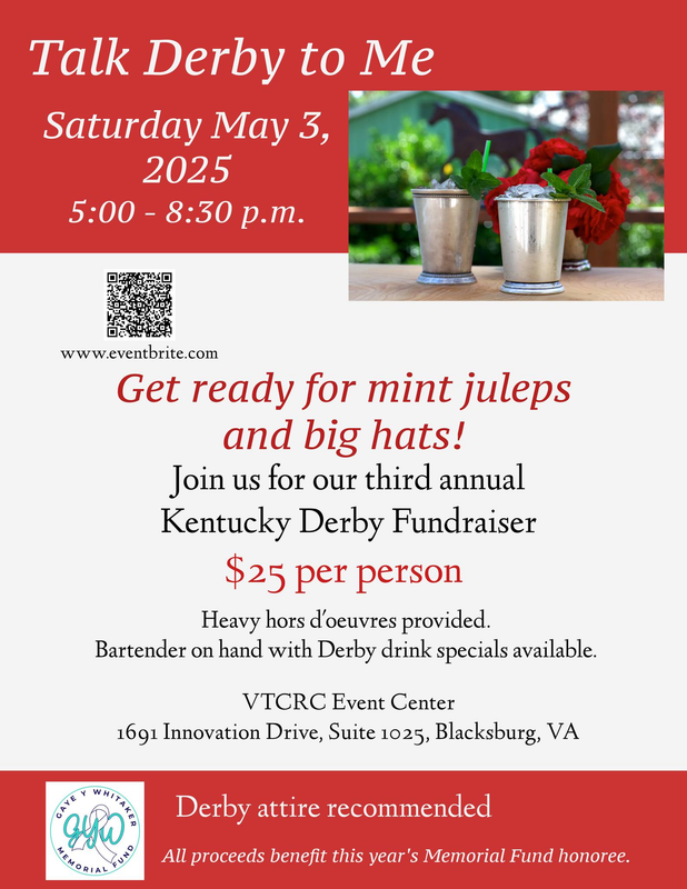 The Gaye Y. Whitaker Memorial Fund presents their Third Annual Kentucky Derby Fundraiser on Saturday, May 3, 2025 at the VTCRC Event Center located within the Virginia Tech Corporate Research Center.