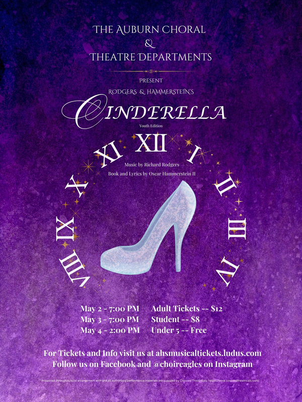 The Auburn High School Choral and Theatre Departments presents the play "Rodgers & Hammerstein's Cinderella" with three performances starting on Friday, May 2, 2025 through Sunday, May 4, 2025 at Auburn High School's Auditorium.