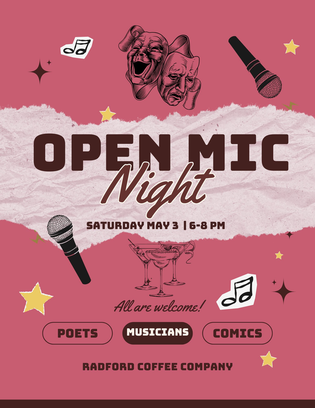 Radford Coffee Company presents their May Open Mic Night on Saturday, May 3, 2025.