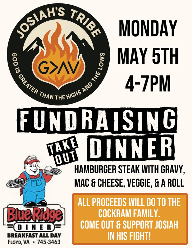 The Blue Ridge Diner in Floyd, VA presents a Fundraising Dinner for Josiah and His Family on Monday, May 5, 2025.
