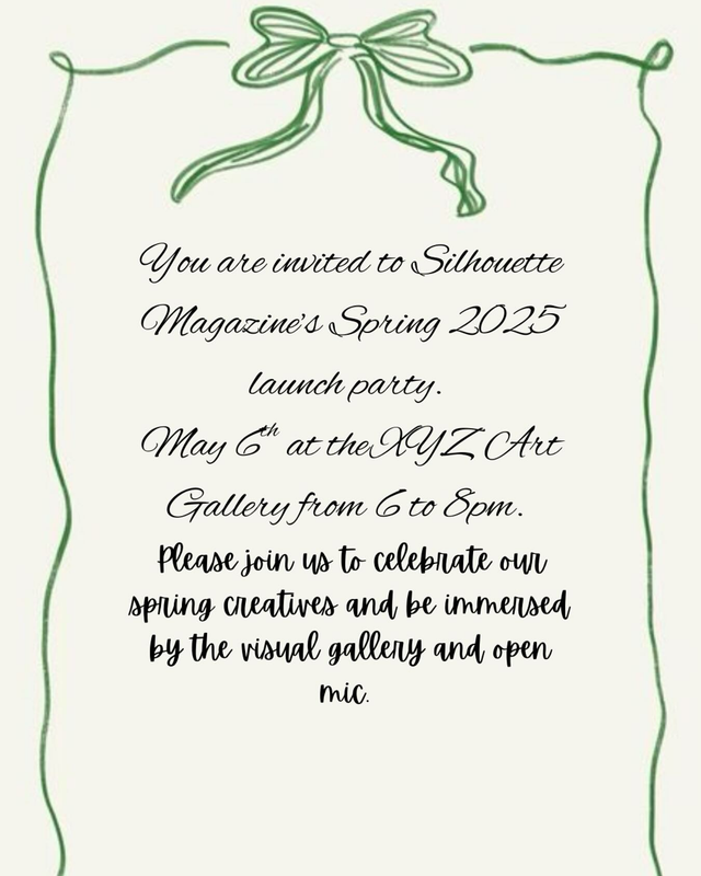 Silhouette Magazine presents their Spring 2025 Launch Party on Tuesday, May 6, 2025 at XYZ Art Gallery.