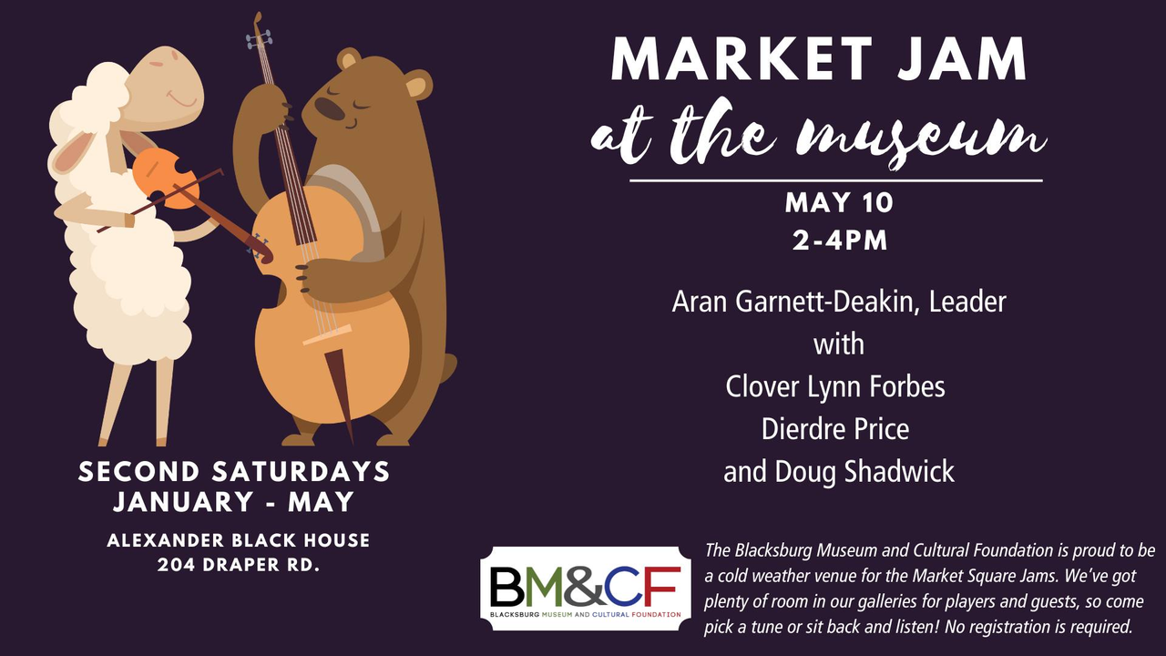 The Blacksburg Museum and Cultural Foundation wraps up their Market Jam at the Museum series on Saturday, May 10, 2025 at the Alexander Black House.