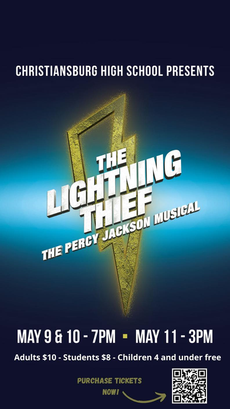 Christiansburg High School Choral Department presents "The Lightning Thief: The Percy Jackson Musical" with three performances starting on Friday, May 9, 2025 through Sunday, May 11, 2025 inside Christiansburg High School Auditorium.