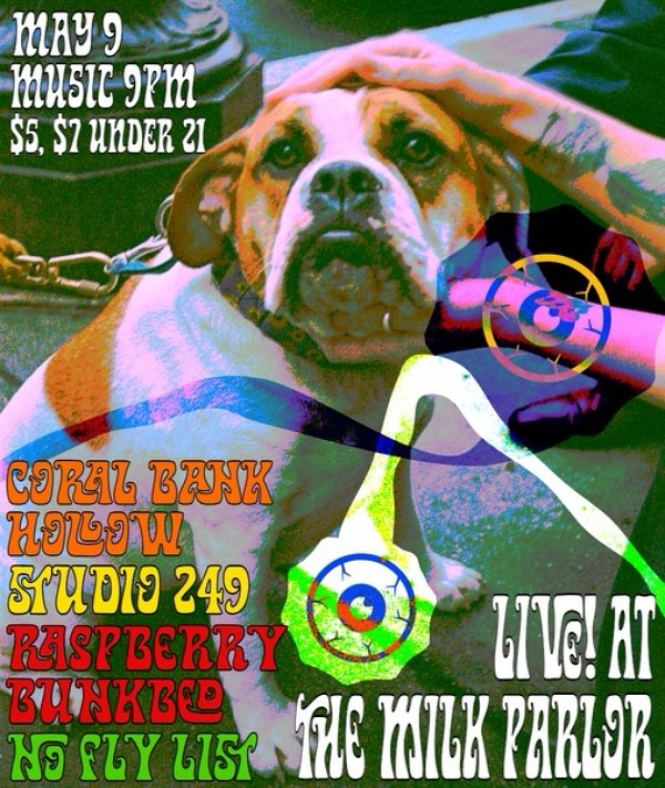 The Milk Parlor presents a Four Band Concert with Coral Bank Hollow, Studio 249, Raspberry Bunkbed and No Fly List on Friday, May 9, 2025.