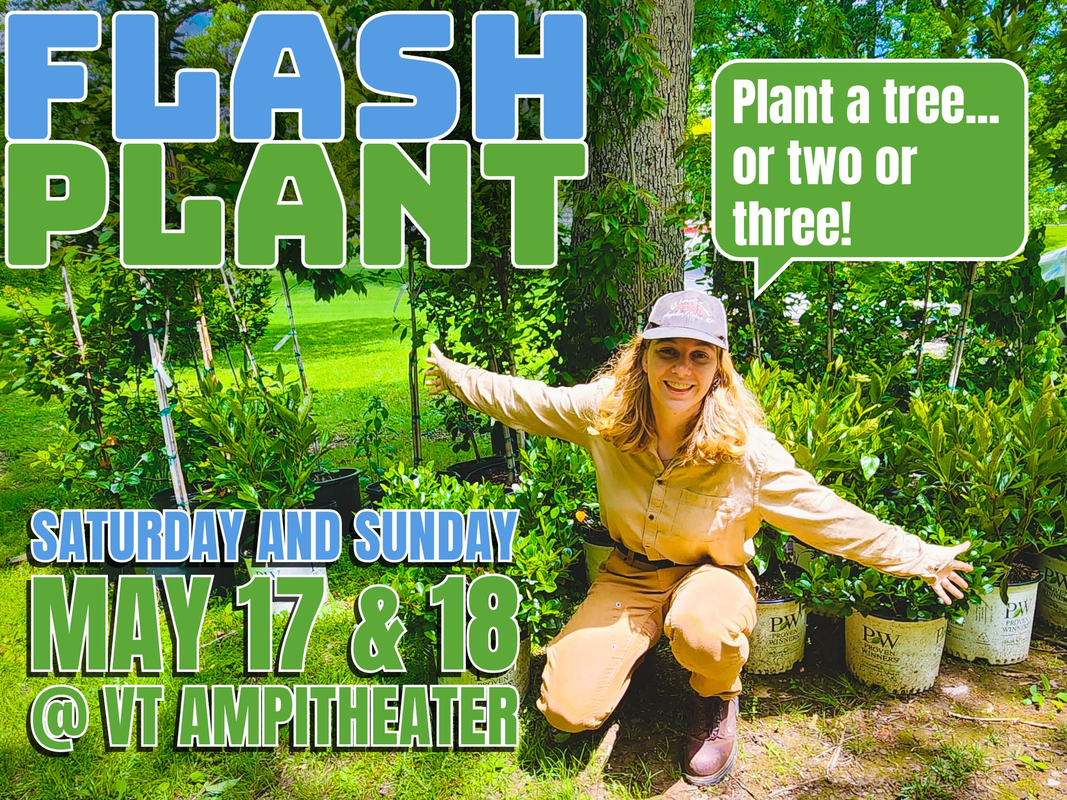 Stoubles Creek Coalition hosts a Flash Plant - Native Tree Planting at Virginia Tech's Amphitheater and Duck Pond area on Saturday, May 17, 2025 and Sunday, May 18, 2025.