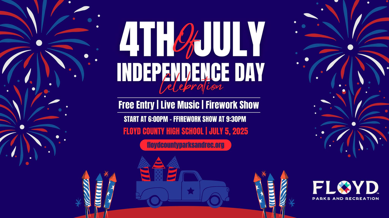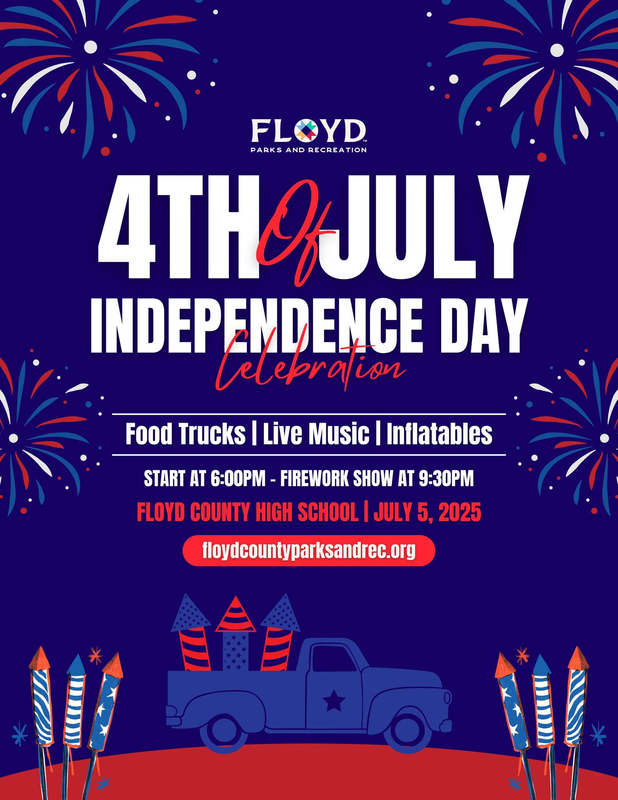 The Floyd County Parks & Recreation present the 2025 Floyd County 4th of July Independence Day Celebration at Floyd County High School on Saturday, July 5, 2025.