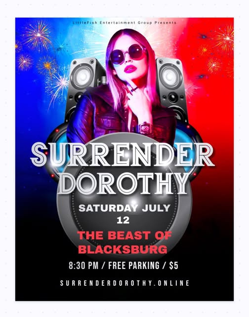 The Beast of Blacksburg Pizzeria & Bar and the LittleFish Entertainment presents Surrender Dorothy in concert on Saturday, July 12, 2025.