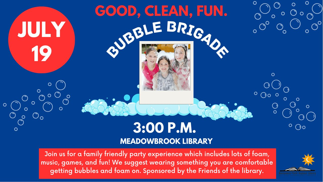 The Meadowbrook Public Library presents Bubble Brigade on Saturday, July 19, 2025.