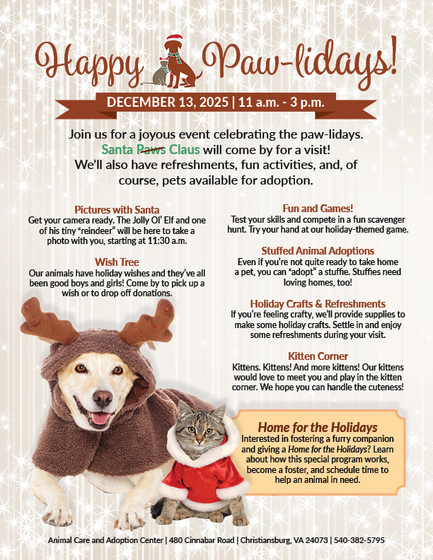 Montgomery County Animal Care and Adoption Center presents their annual Happy Paw-lidays event on Saturday, December 13, 2025.