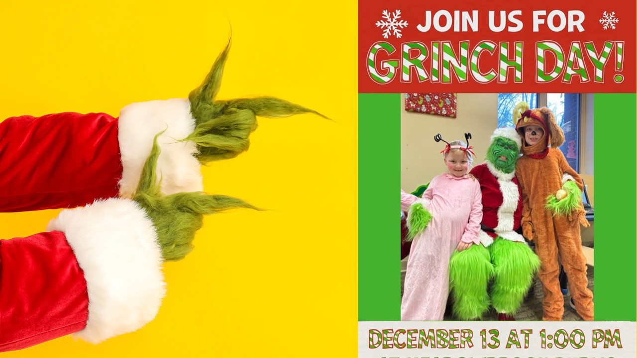 The Meadowbrook Public Library presents Take a Photo with The Grinch on Saturday, December 13, 2025.