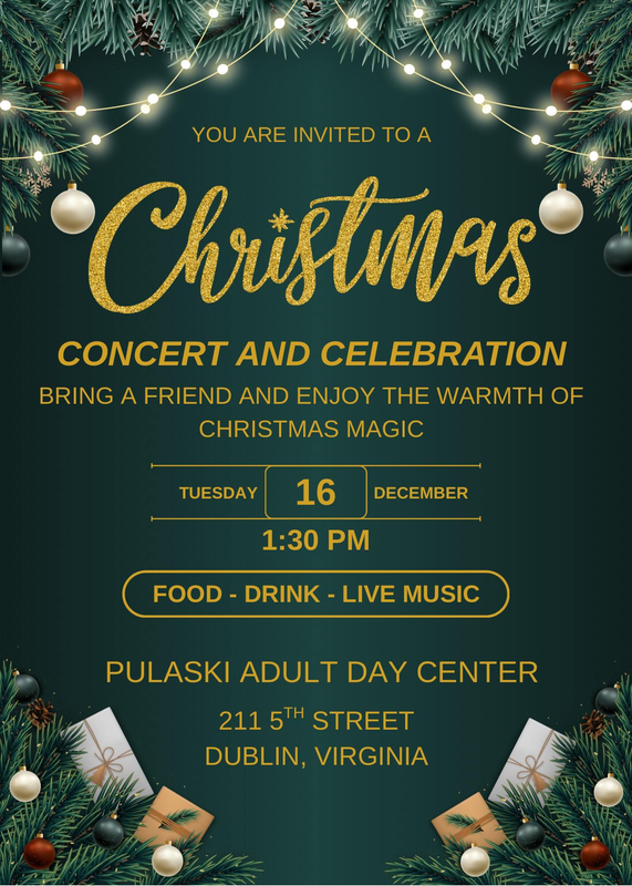 The Pulaski Adult Day Center presents 2025 Christmas Concert and Celebration on Tuesday, December 16, 2025.