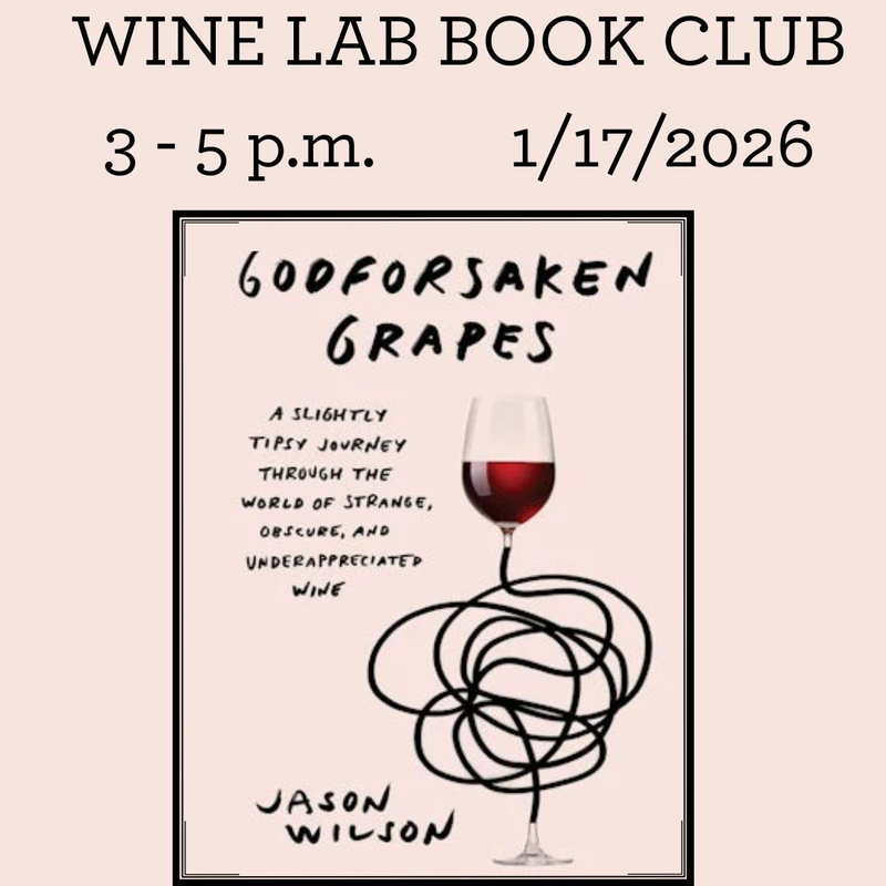 Blacksburg Wine Lab their January Book Club with the book "Godforsaken Grapes" by Jason Wilson on Saturday, January 17, 2026.