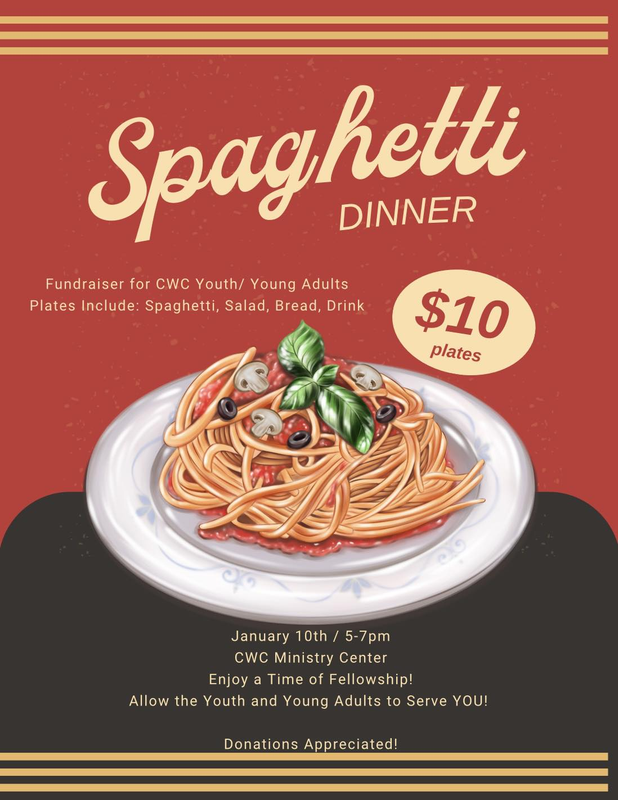 Christ Wesleyan Church presents Spaghetti Dinner Fundraiser on Saturday, January 10, 2026.